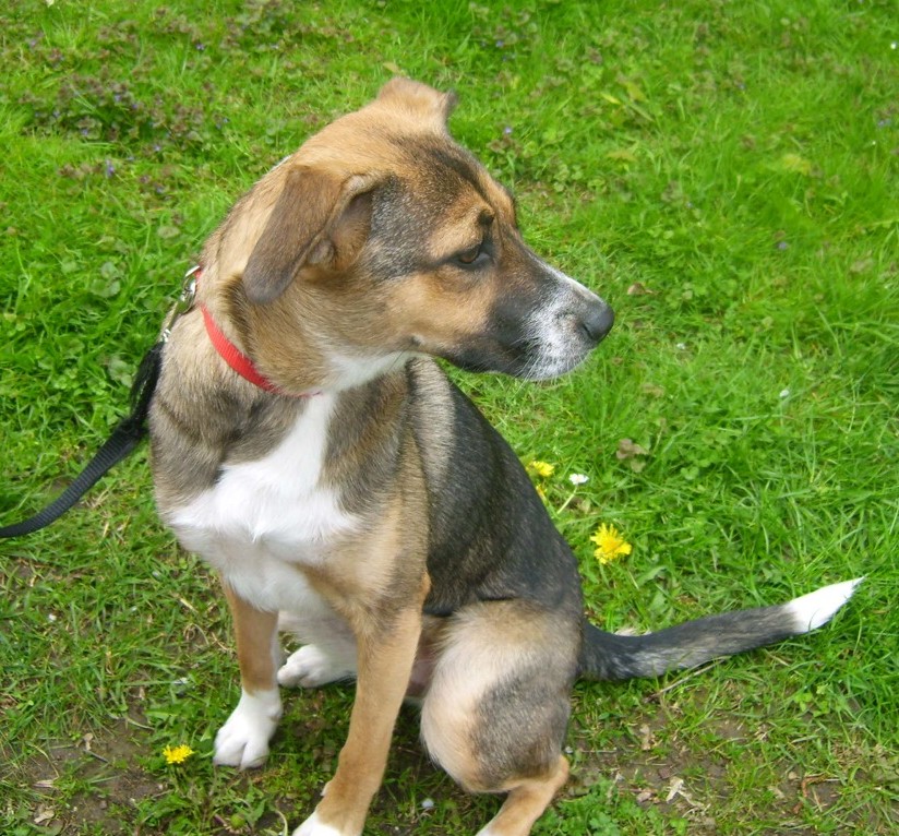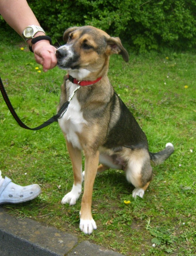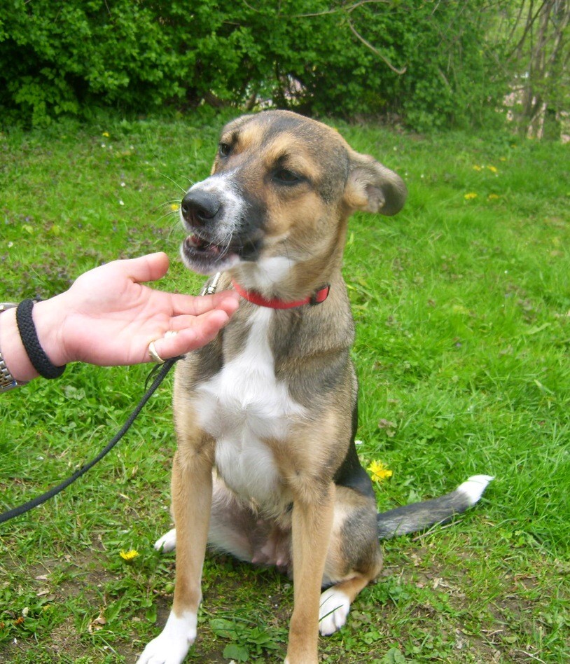 Sie kommt wohl ursprünglich aus Rumänien und war jetzt ein halbes Jahr bei einer Familie mit kleinen Kindern, die überhaupt nicht mit dem Hund klar kam und ihm auch nichts beigebracht hat.